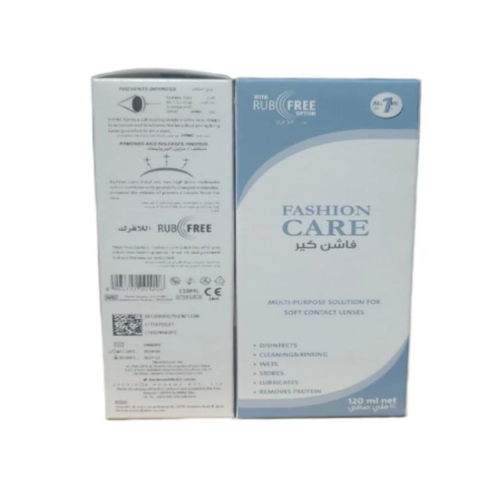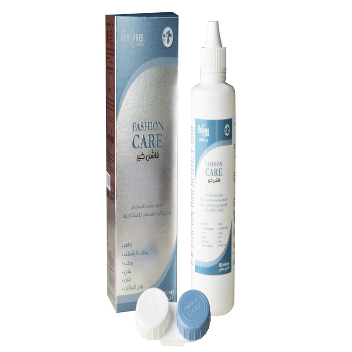 محلول فاشن كير محلول طبي متعدد الأغراض للعدسات، فاشن كير محلول مائي يحتوي على مزيج من العناصر المتجانسة، التي تعمل على تعقيم وتنظيف العدسات وإزالة ترسبات البروتين، مما يساعد على التخلص من الجراثيم، وإبقاء العدسات رطبة طوال اليوم، لراحة أكثر للعينين.