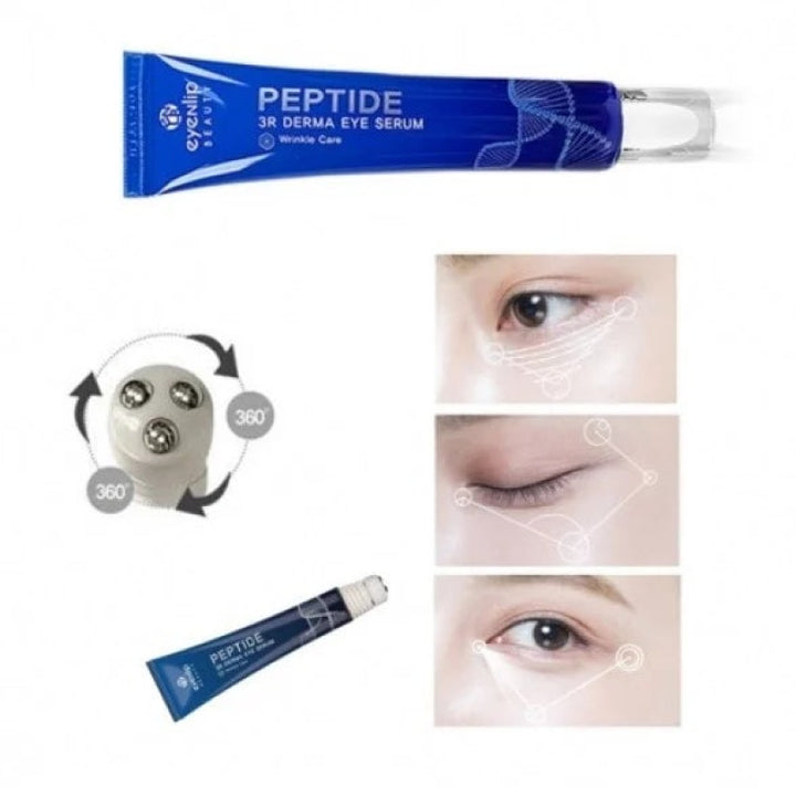 سيروم-رولر للبشرة حول العينين، غني بالببتيدات، يتميز بتأثير مجدد ورافع واضح، ينعم التجاعيد، ويزيل علامات التعب.