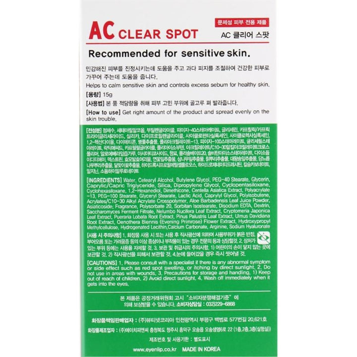 كريم AC Clear Spot الكوري الجنوبي لعلاج فعال للبشرة الدهنية والمختلطة والمعرضة لحب الشباب والملتهبة والمشكلات.