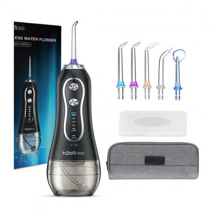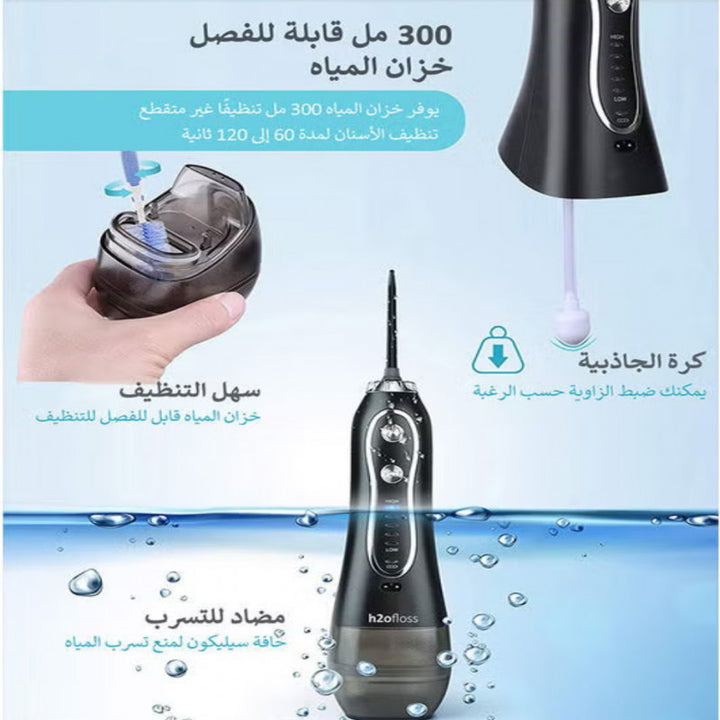 جهاز تنظيف أسنان مائي محمول يتميز بـ 5 أوضاع، لون أسود/شفاف أسود 300ملليلتر