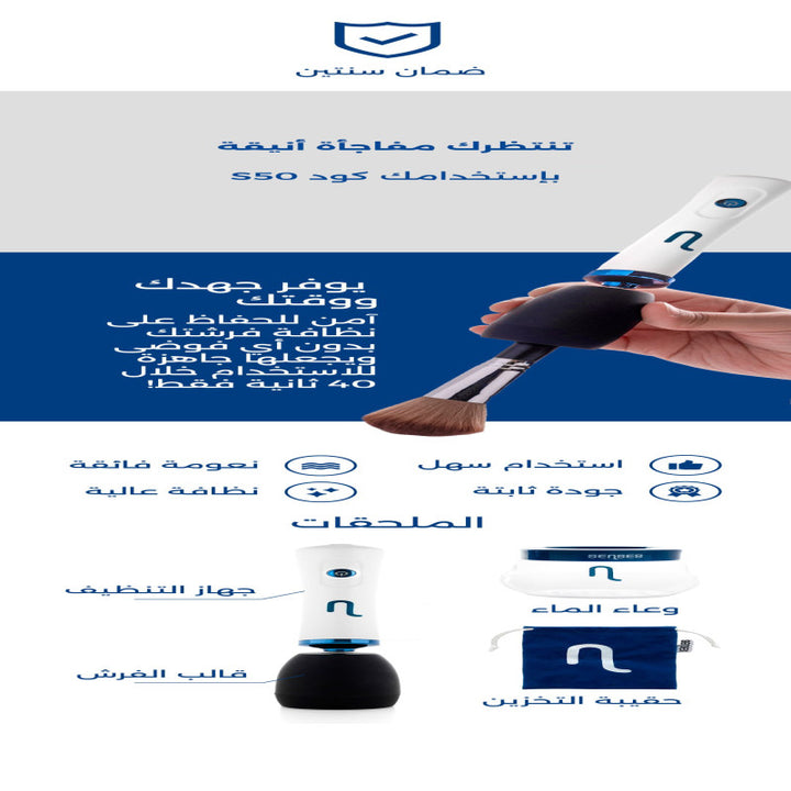 جهاز تنظيف فرش المكياج، المصمم لتوفير حل تنظيف فعال لفرش المكياج الخاصة بك. يضمن هذا الجهاز المبتكر تنظيف فرش المكياج الخاصة بك جيدًا وإزالة بقايا المكياج .