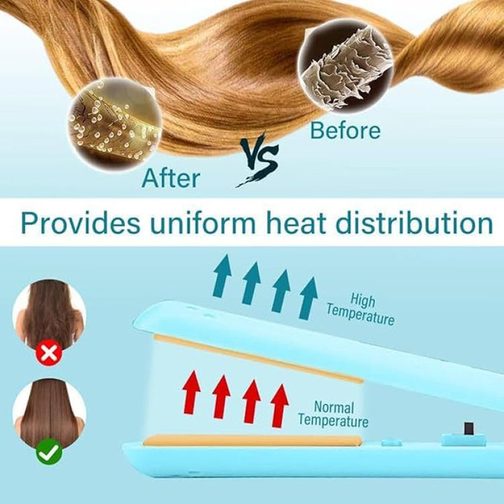 - لوحة عائمة ثلاثية الأبعاد: تتميز مكواة تجعيد الشعر الصغيرة ومكواة فرد الشعر بلوحة تسخين عائمة، تُوزّع الشعر بالتساوي تلقائيًا، مما يجعل عملية الكي سلسة للغاية ويخلصك من خشونة الشعر.
