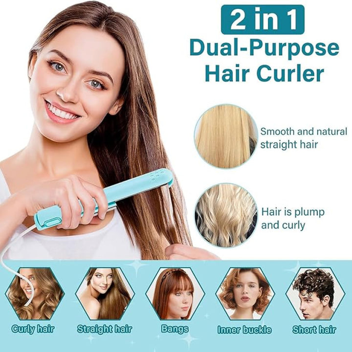 - استخدام مزدوج للشعر المستقيم والمجعد: مكواة تجعيد الشعر الصغيرة 2 في 1 ومكواة فرد الشعر تسمح لك بالتبديل بين أنماط الفرد والتجعيد بسهولة، مما يمنحك حرية إنشاء أي مظهر تريده. المنتج قابل للتوصيل والتشغيل، يرجى توصيل USB للاستخدام!