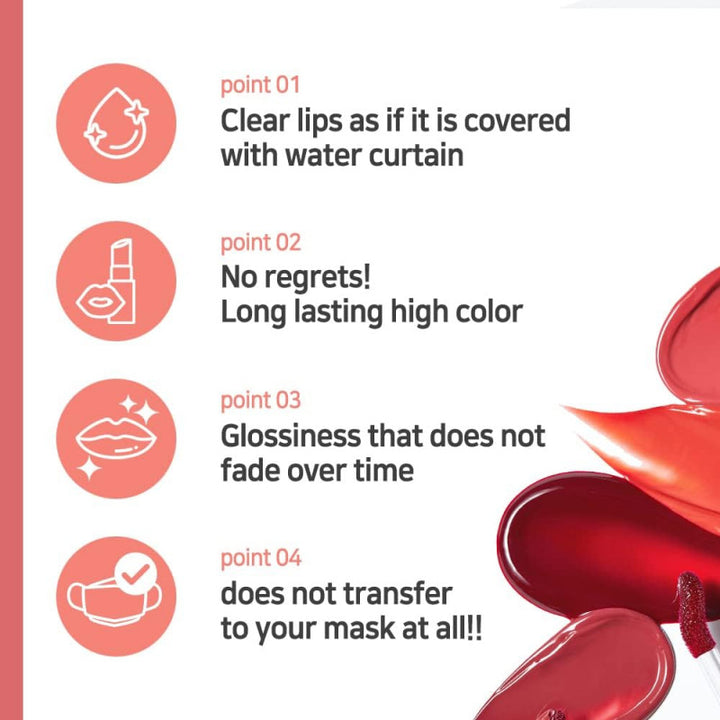 يمنح هذا الملمع مظهراً ممتلئاً ولامعاً للشفاه ويجعلها أكثر جاذبية. لحصوله على ملمس مائي يظهر الشفاه باللون الوردي الطبيعي لفترة طويلة تدوم لأكثر من 6 ساعات.