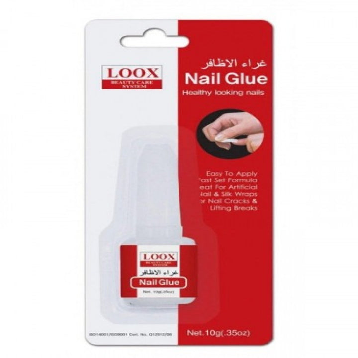 التطبيق: يتم استخدام غراء الأظافر LOOX عند تركيب الأظافر الاصطناعية، يُوصى بتنظيف الأظافر الطبيعية جيدًا وتجفيفها قبل وضع الغراء، يتم وضع قطرة صغيرة من الغراء على الأظفر الاصطناعية ثم وضعها بحذر وضغطها على الأظفر الطبيعية للتثبيت.
