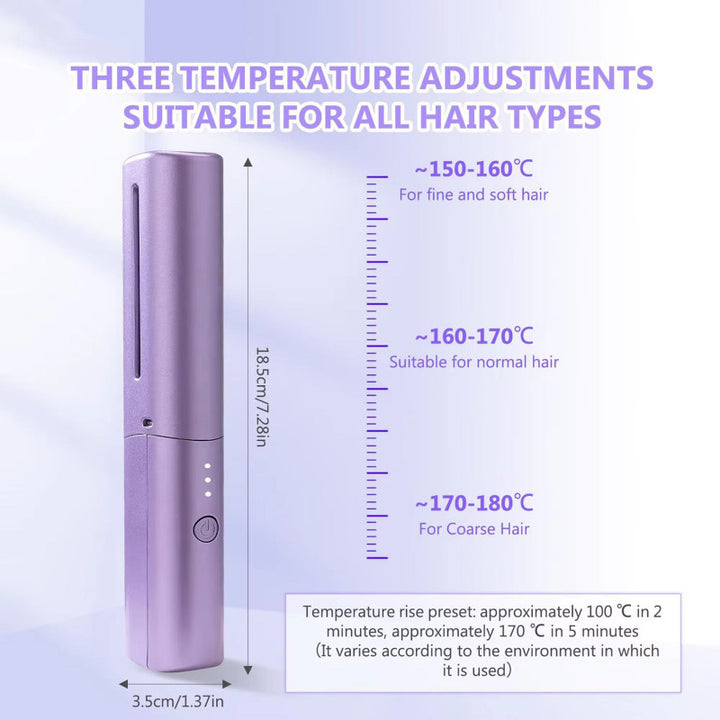 - تصميم لاسلكي: تستخدم مكواة فرد الشعر هذه تصميمًا لاسلكيًا يسمح بالاستخدام غير المقيد بغض النظر عن الإعداد. وبفضل حجمها الصغير والمحمول، فهي مناسبة للاستخدام في أي وقت وفي أي مكان.